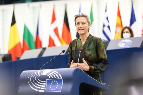Bild: Margrethe Vestager, EU-Kommissarin für Wettbewerbspolitik, bei der Plenarsitzung am