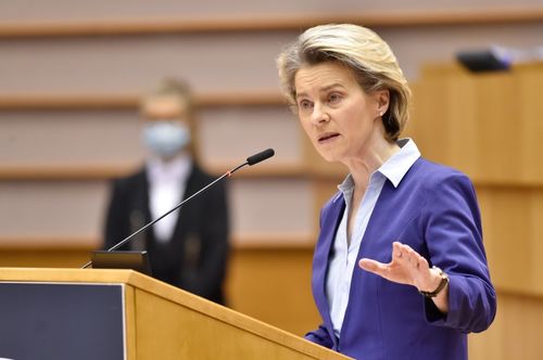 Von der Leyen räumte auch ein, dass man die Schwierigkeiten der Massenproduktion von Impfstoff unterschätzt habe: „Normalerweise dauert es fünf bis zehn Jahre, um einen neuen Impfstoff herzustellen. Wir haben das in zehn Monaten geschafft. Das ist eine große Leistung der Wissenschaft, auf die wir stolz sein können! Aber die Wissenschaft hat in gewisser Weise die Industrie überholt. Die Herstellung neuer Impfstoffe ist ein äußerst komplexes Verfahren. Man kann nicht von heute auf morgen eine neue Produktionsstätte errichten. Zudem bestehen diese Impfstoffe aus bis zu 400 Bestandteilen, und an ihrer Herstellung sind bis zu 100 Unternehmen beteiligt. Daher haben wir eine Task-Force gegründet, mit der wir die industrielle Produktion der Impfstoffe steigern wollen.“