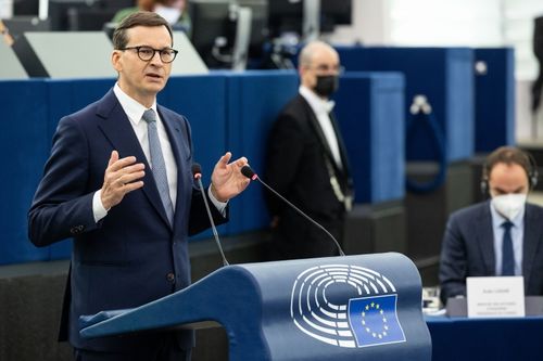 Bild: Der polnische Premierminister Mateusz Morawiecki bei der Plenardebatte im